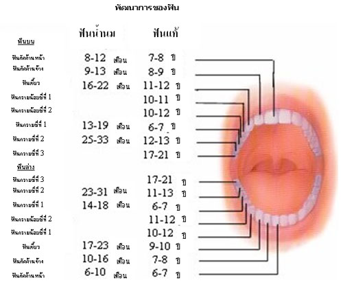 ฟันของเด็กๆ จะเริ่มสร้างตัวตั้งแต่ก่อนคลอด เมื่ออายุได้ประมาณ 4 เดือน ฟันน้ำนมซี่แรก ซึ่งก็คือ ฟันตัดหน้าล่างคู่กลาง ก็จะเริ่มงอกโผล่พ้นเหงือกขึ้นมา จากนั้น ก็ตามมาด้วยฟันตัดหน้าบนคู่กลาง และแม้ว่าฟันน้ำนมทั้ง 20 ซี่จะโผล่ขึ้นมาในช่องปากเมื่ออายุครบ 3 ปี แต่ก็มีความแตกต่างกันในแต่ละคนในเรื่องของความเร็ว ระยะเวลาในการงอก รวมทั้งลำดับการงอกอีกด้วย